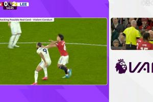 体育资讯04月14日讯 英超第32轮,曼联对阵利兹联。55分钟, VAR介入,主裁亲自观看回放,判罚利桑德罗拉拽勒温头发,被红牌罚下。